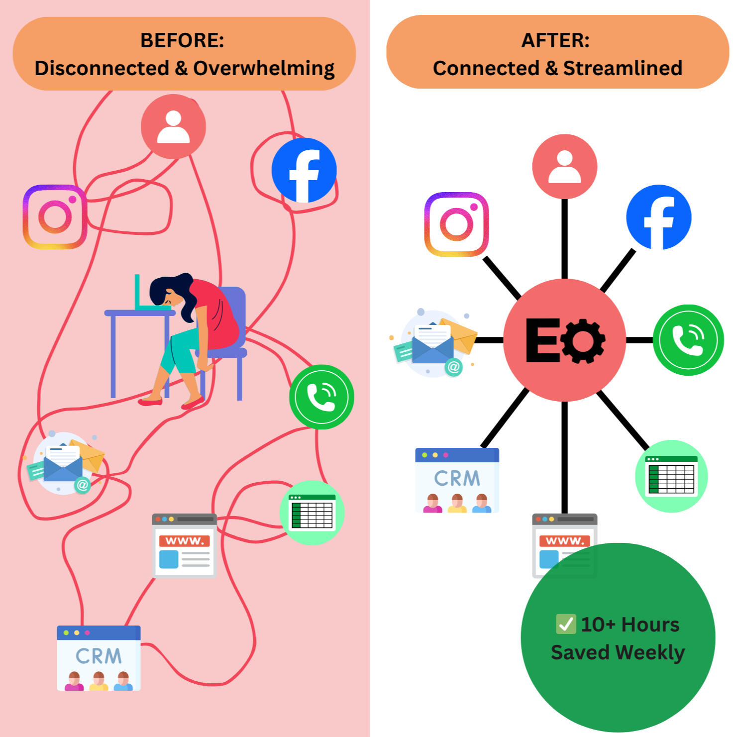 🔗 Systems that talk to each other so you don't have toMost clients reclaim 5-15 hours per week - time they can spend on growth, clients, and actually running their business.